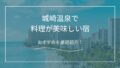今回紹介した宿はどれも料理の評価が高く、食を旅の中心にしたい方に自信を持っておすすめできる宿ばかりです。